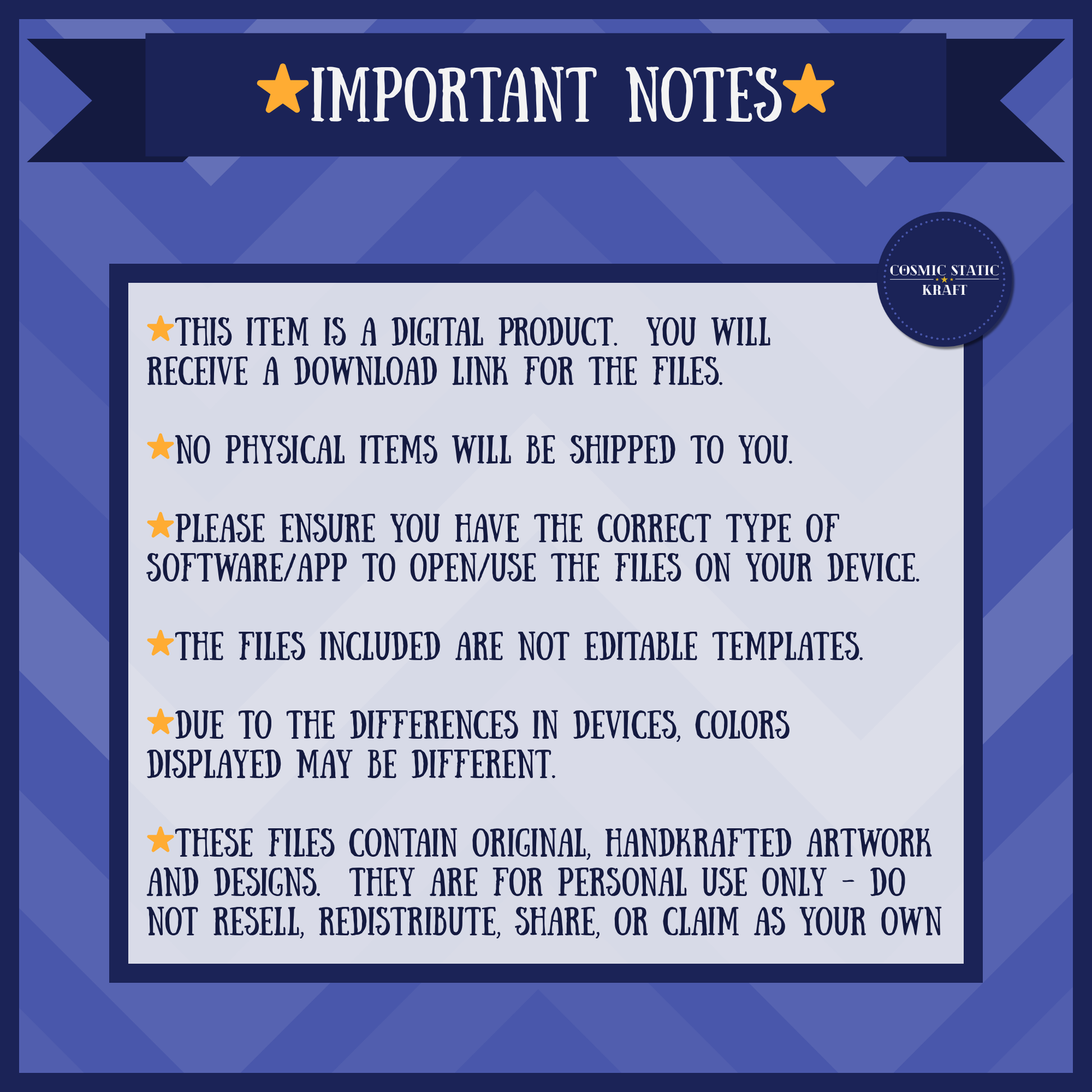 ⭐These files contain original, handkrafted artwork and designs. They are for personal use only - do not resell, redistribute, share, or claim as your own